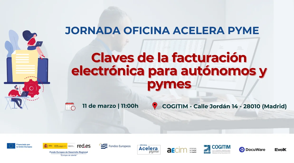 Desde la Oficina Acelera Pyme de AECIM en colaboración con el COGITIM hemos organizado esta jornada divulgativa con el objetivo de informar a las pymes y autónomos sobre un tema clave para la digitalización empresarial en España: la implementación de la factura electrónica bajo la Ley «Crea y Crece.
