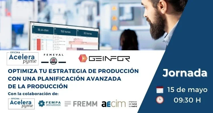 La Oficina Acelera Pyme de FEMEVAL, junto a las Oficinas Acelera Pyme de FEMPA, AECIM y FREMM, te invitamos a descubrir cómo una planificación avanzada de la producción puede marcar la diferencia entre sobrevivir o destacar en un entorno industrial cada vez más exigente.